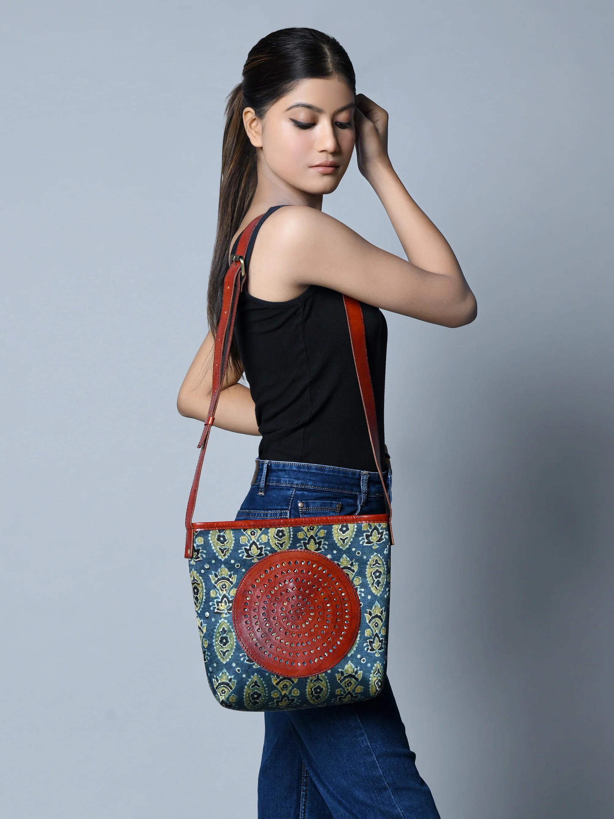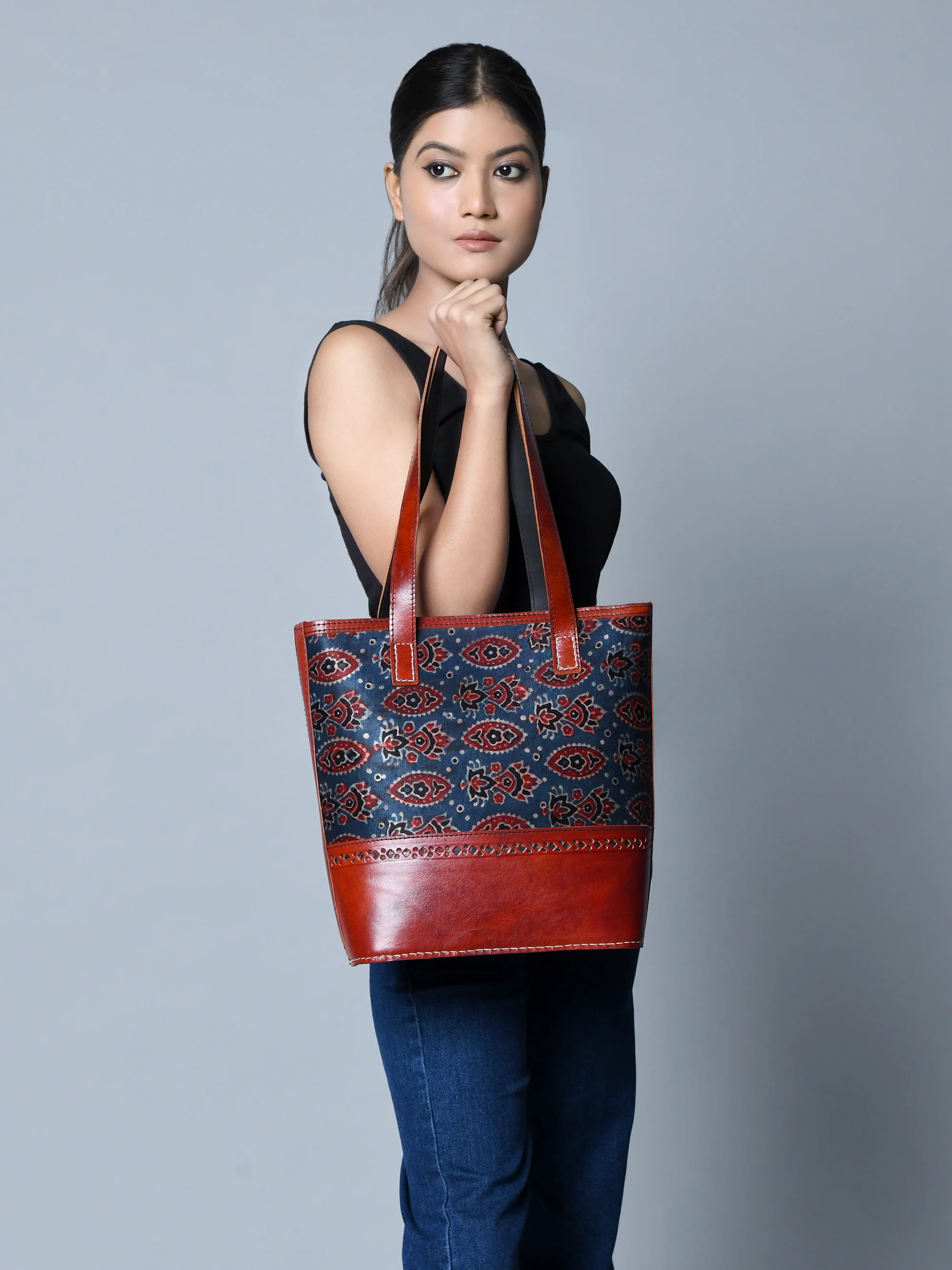 Heritage Ajrakh Leather Tote Bag